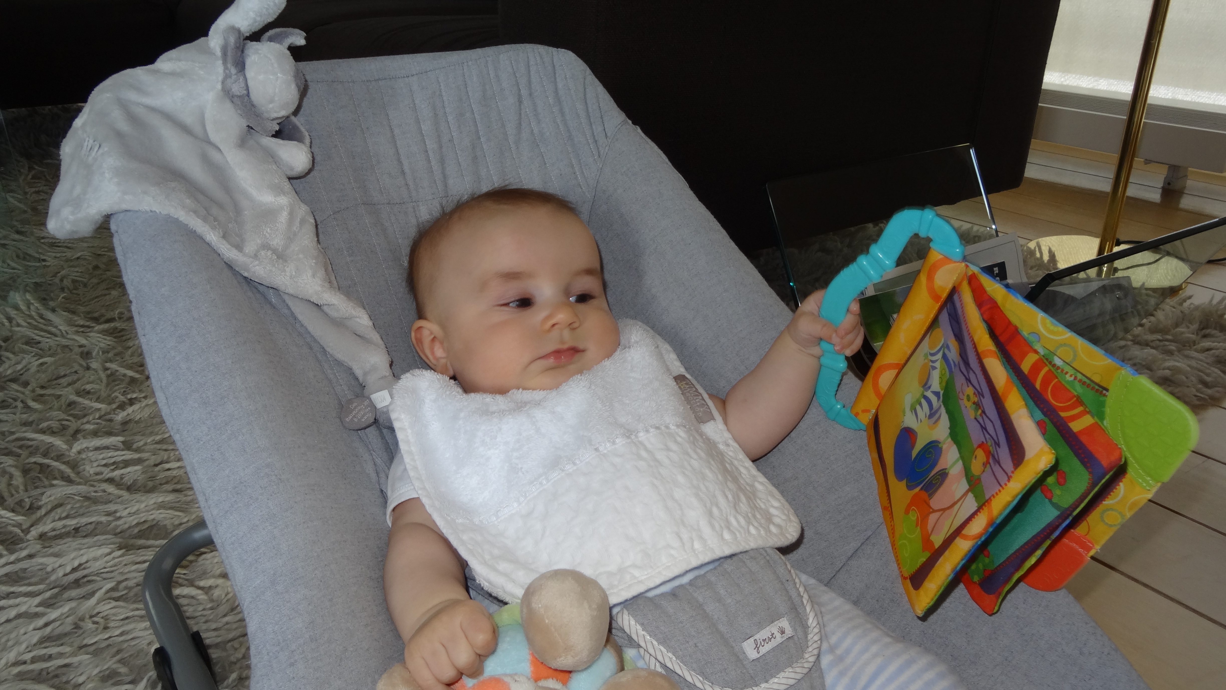 Onze herinneringen aan het eerste levensjaar van de broertjes met een knisperboekje op het speeltapijt en in het wipstoeltje zijn nog levendig. Ze waren gefascineerd door zo’n stoffen boekje met een knisperend geluid bij het vastpakken. Eigenlijk leerden ze er niet alleen op te sabbelen en mee te gooien. Ze voelden eraan en gaandeweg draaiden ze pagina’s.