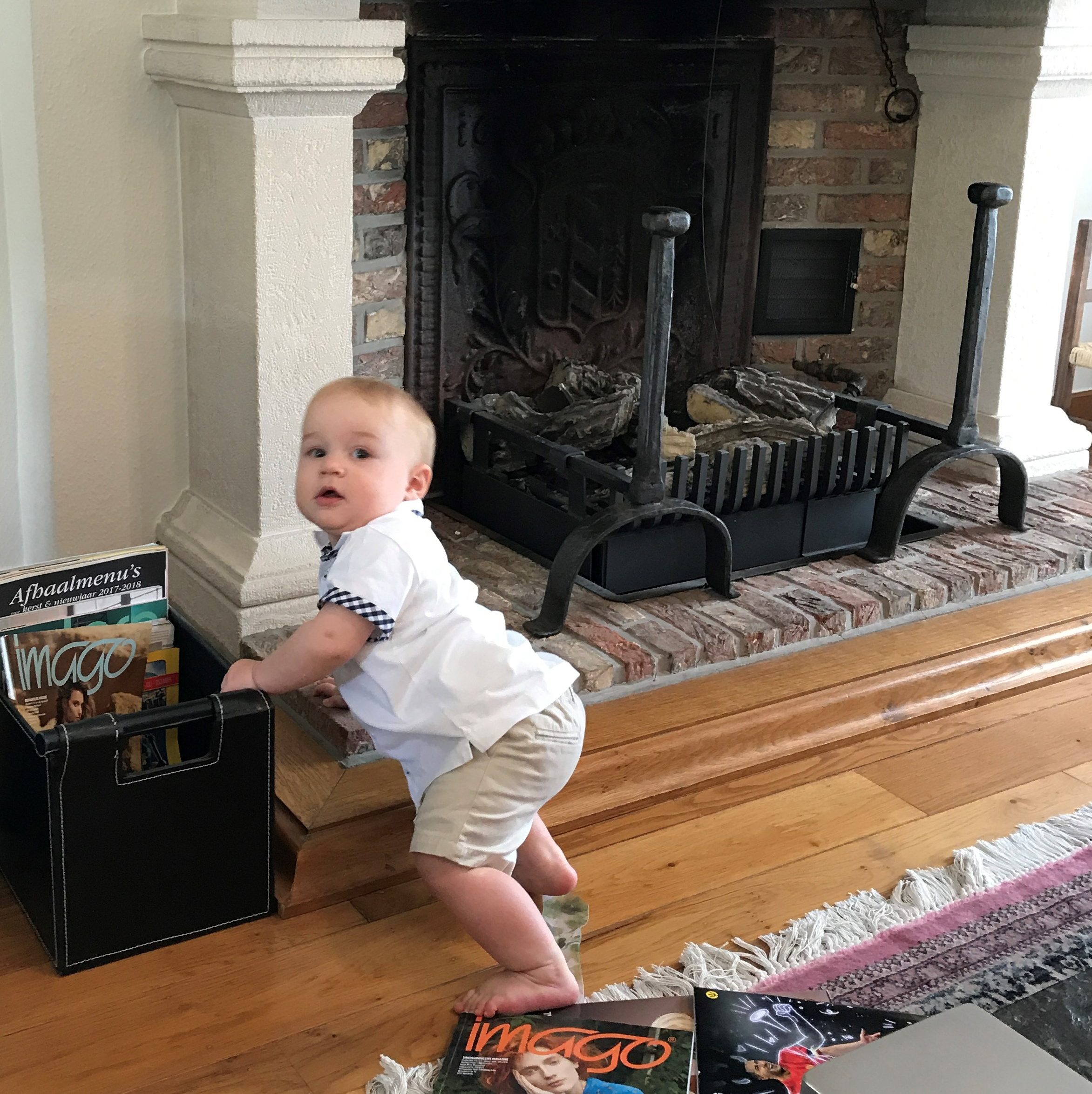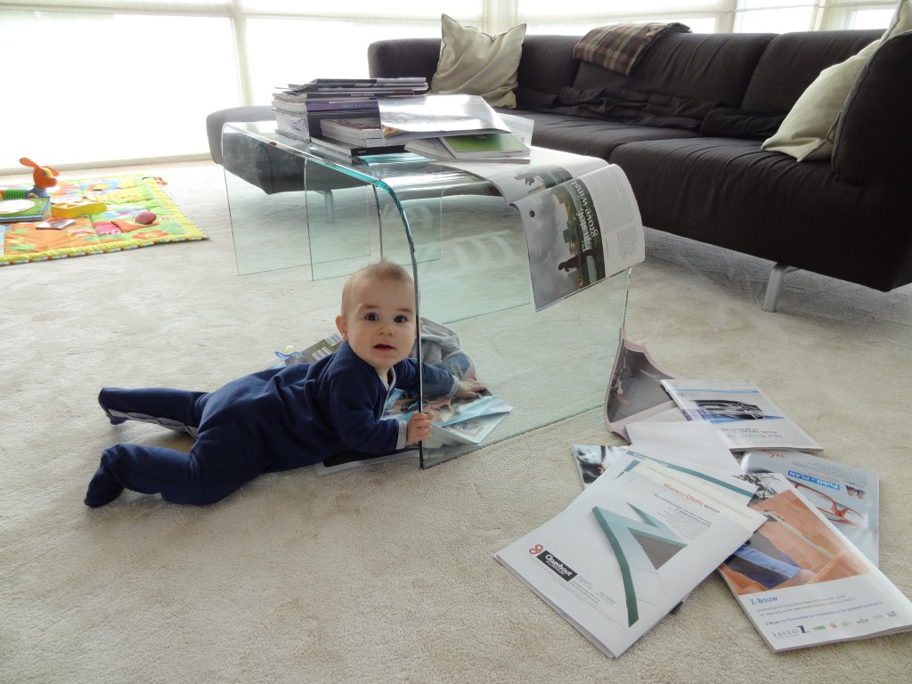 Dagbladen en kleurrijke kinderboeken lokten onze jongens. Op de foto aan de rechterkant herken je ongetwijfeld ‘Rupsje Nooitgenoeg’ van Eric Carle. Tijdens de peuter- en kleutertijd bleven kijk-, zoek- en voelboeken altijd een succes.