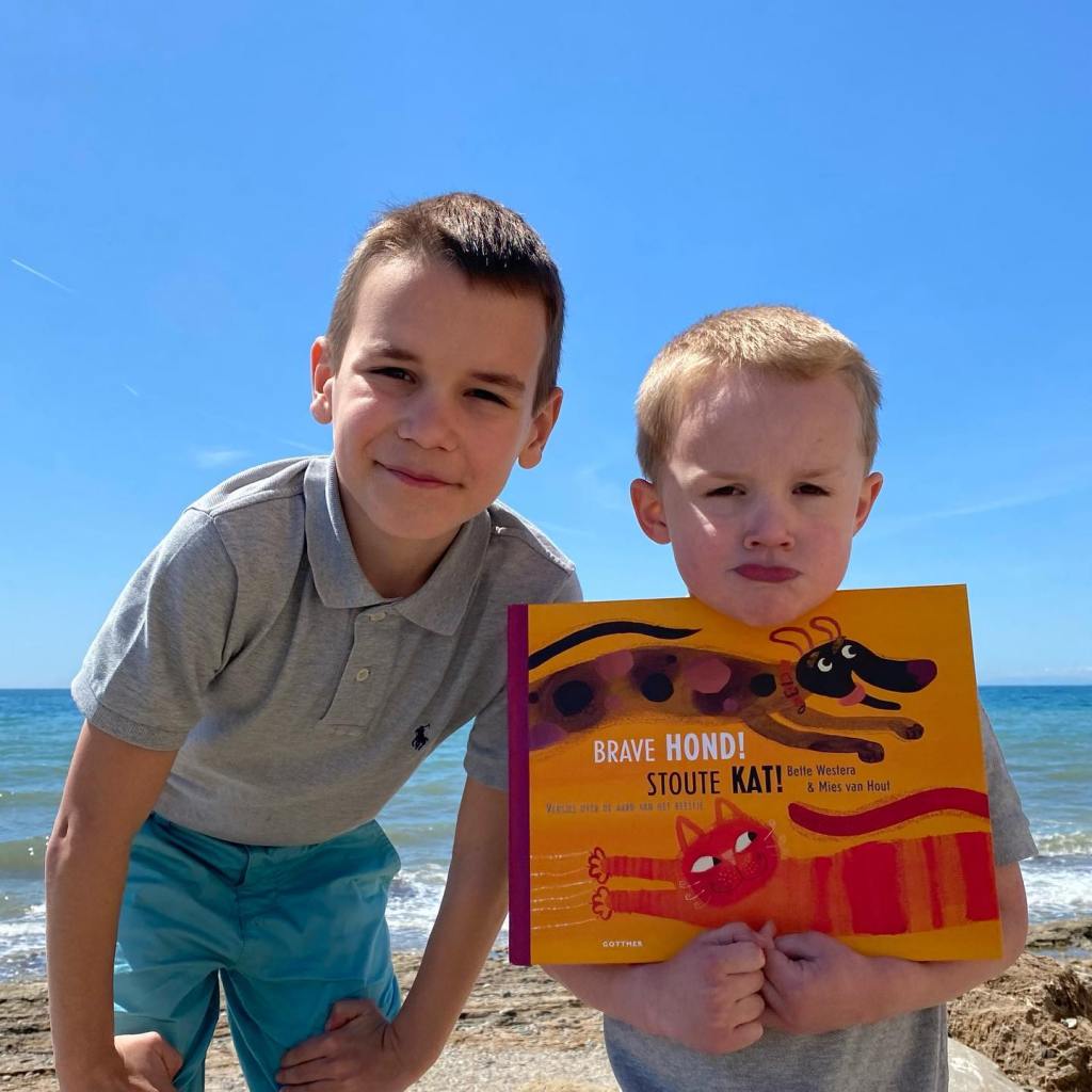 Ook de broers leren nog nieuwe woorden kennen, zoals onlangs het woord ‘onbesuisd’ in ‘Brave hond! Stoute kat!’ van Bette Westera en Mies van Hout.